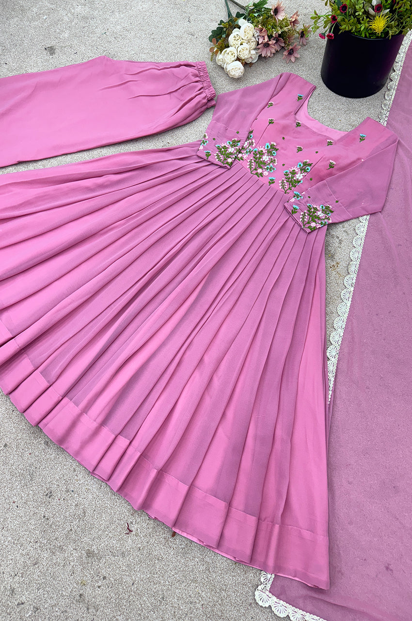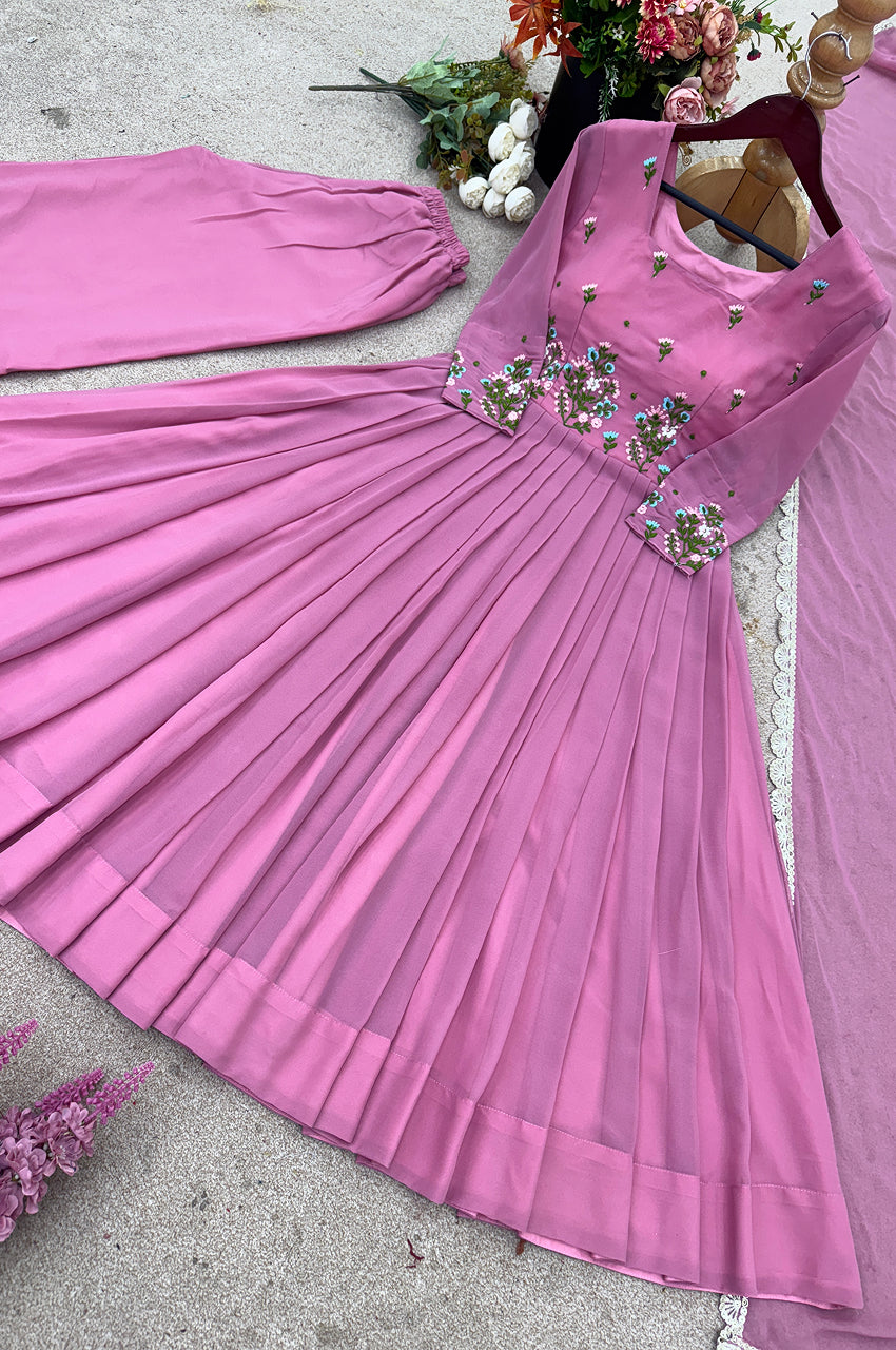 ✨ Elevate your festive style with this stunning Designer Party Wear Ensemble, crafted from Heavy Faux Georgette and detailed with elegant embroidery and designer sleeves. Whether it's a festive function, Rakhi celebration, or evening party, this outfit delivers both comfort and charm in a ready-to-wear package.